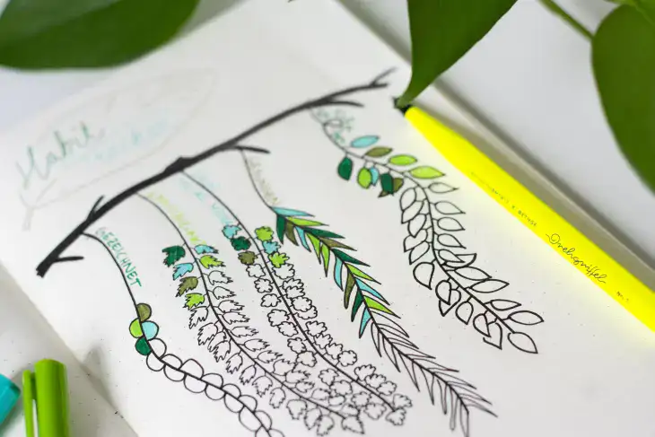 - Fineliner oder Buntstifte in verschiedenen Grüntönen