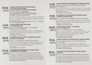 Sie möchten einen Handlettering-Workshop besuchen oder selbst schöne Karten kalligraphieren und gestalten? Unser Veranstaltungsprogramm Frühling 2026 bietet viele kreative Angebote zum Mitmachen und Ausprobieren. Wir freuen uns auf Sie!