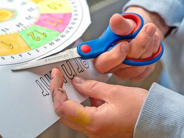 Unser Tipp: Wenn Ihr Kind die Lernuhr selbst bemalt und dekoriert, identifiziert es sich viel stärker damit und trainiert zusätzlich die Feinmotorik. Wir empfehlen dafür gerne die ergonomischen Stifte und Scheren von STAEDTLER.