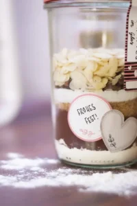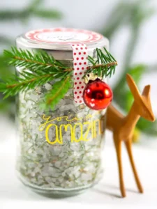 …und wird in einem hübsch dekorierten Schraubglas zum individuellen Weihnachtsgeschenk.