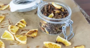 - Gewürze mit Zitrusfrüchten und Zesten vermischen und in ein Glas füllen.
