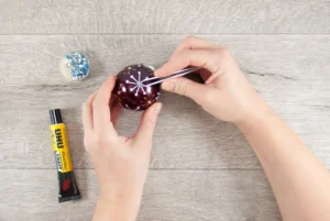 - Den Rest der Kugel mit Hilfe eines feinen Markes mit Punkten verzieren.