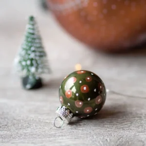 - Mit grĂĽnem Metallicstift kleine Tannen auf die Christbaumkugel setzen.